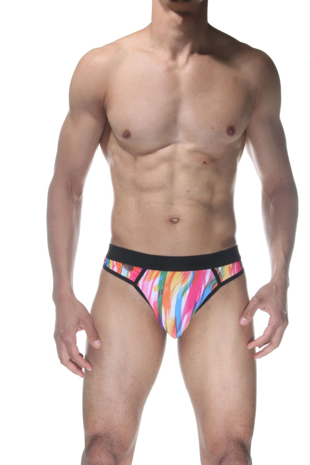 Мужские трусы-стринги с принтом в виде мазков краски.