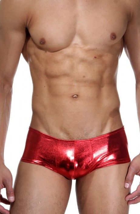 Ярко-красные трусы-хипсы из гладкого блестящего материала. Сзади на ягодицах декор-сердце.