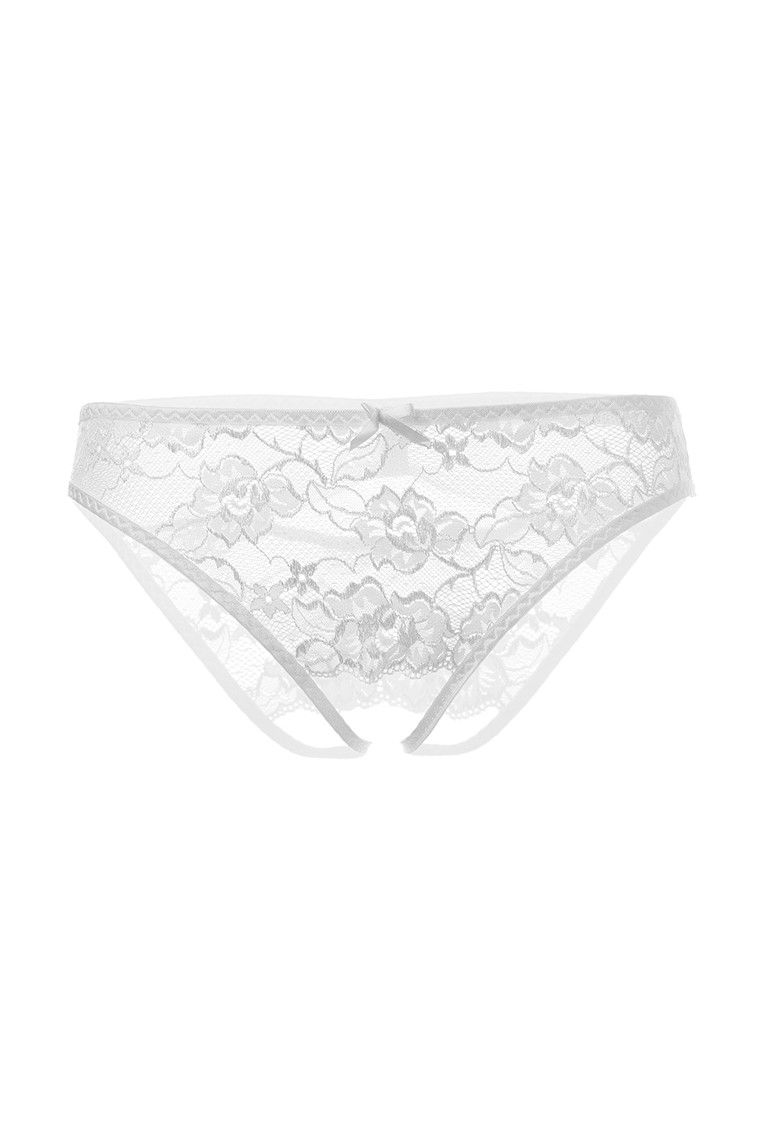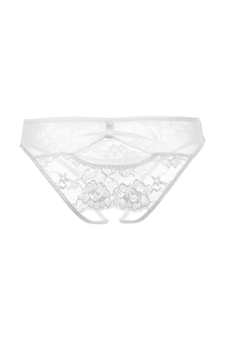 Эти очаровательные трусики с бантом станут для любимого настоящим сюрпризом. Выполненные из красивого кружева с крупным цветочным узором, они притянут взгляды к вашим бёдрам. Стоит вам чуть раздвинуть ножки или повернуться к милому спинкой, чтобы его целиком охватило сексуальное желание. Виной тому вырез, открывающий доступ и к нежному бутону, и к ложбинке попки. Сетчатый поясок, похожий на бант, и ажурная перемычка придадут виду сзади дополнительной пикантности.
