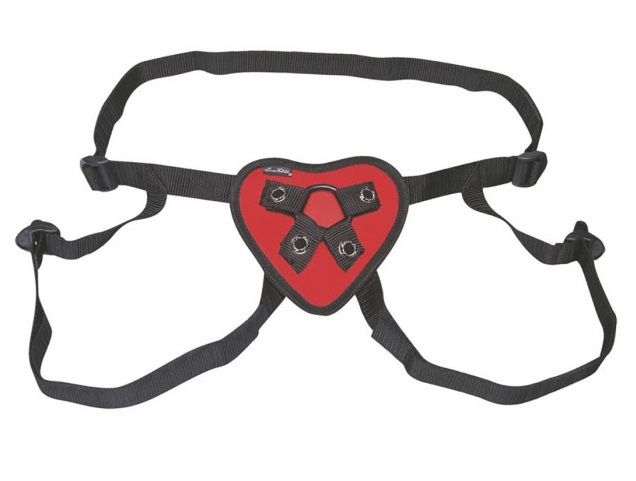 Трусики-джоки с регулирующимся с помощью пряжек размером. На красном мягком сердце - 2 кольца разного размера для крепления стимуляторов. Размер: 13-19 см.