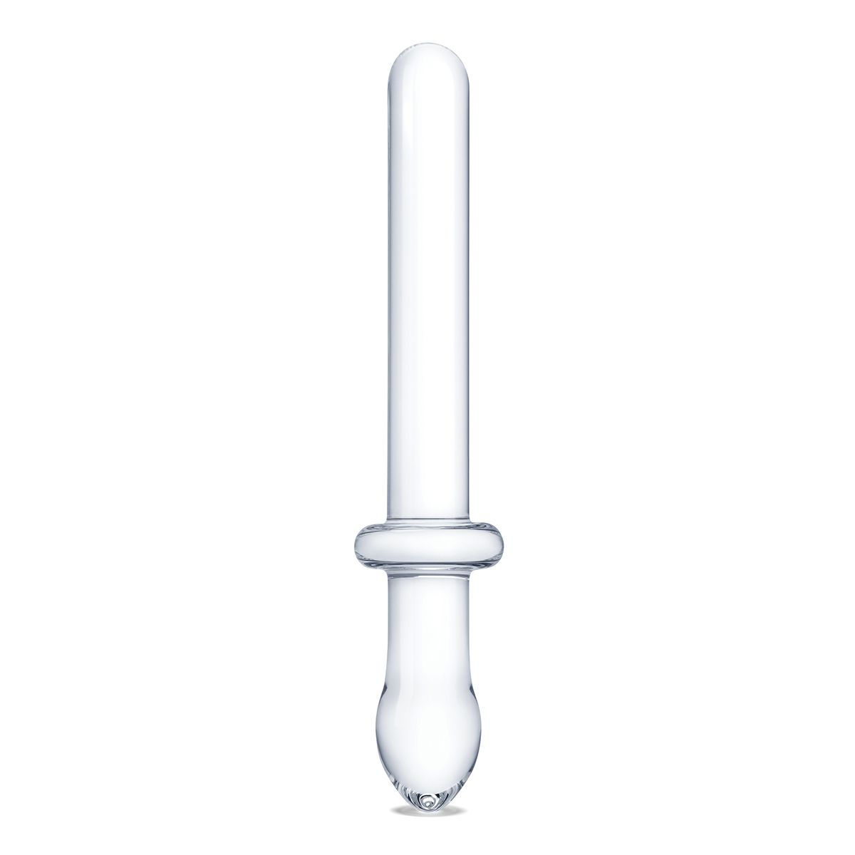 Удвойте свое удовольствие с этим двусторонним фаллоимитатором из стекла. Стимулируйте себя или партнера изнутри благодаря гладкой вагинальной части или анальной. Посередине ограничительное основание, диаметром 4,6 см, а заостренные гладкие головки с двух сторон позволяют легко вводить игрушку любым из концов. Плоское центральное основание обеспечивает безопасность использования. Длина фаллической части - 14,5 см, диаметр - 2,5 см. Длина пробки - 7 см, диаметр - 3 см.