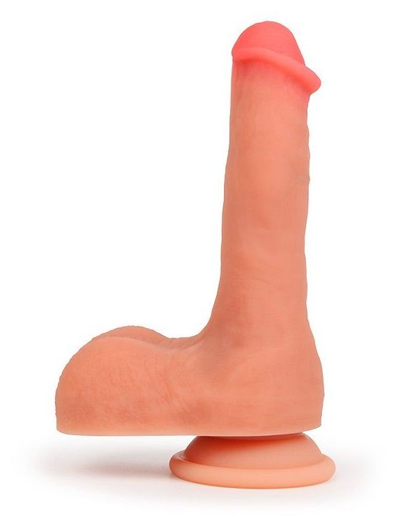 Фаллоимитатор на присоске для любителей реалистичных секс-игрушек! Интимный аксессуар отличается ярко выраженной головкой, внушительной мошонкой и роскошными размерами пениса. Натуральный оттенок, складочки и «пульсирующие» венки придают изделию больше естественности. Присоска позволяет прочно крепить фаллоимитатор на ровной поверхности в горизонтальном или вертикальном положении. Секс-игрушка изготовлена из мягкого материала, дарящего приятные тактильные ощущения. Рабочая длина - 14,5 см.