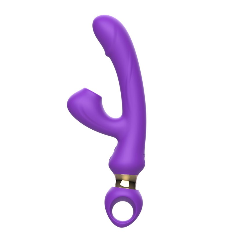 Фиолетовый вибратор-кролик с вакуумной стимуляцией клитора. 10 режимов вибрации, 10 режимов вакуума. Рабочая длина - 11,8 см.