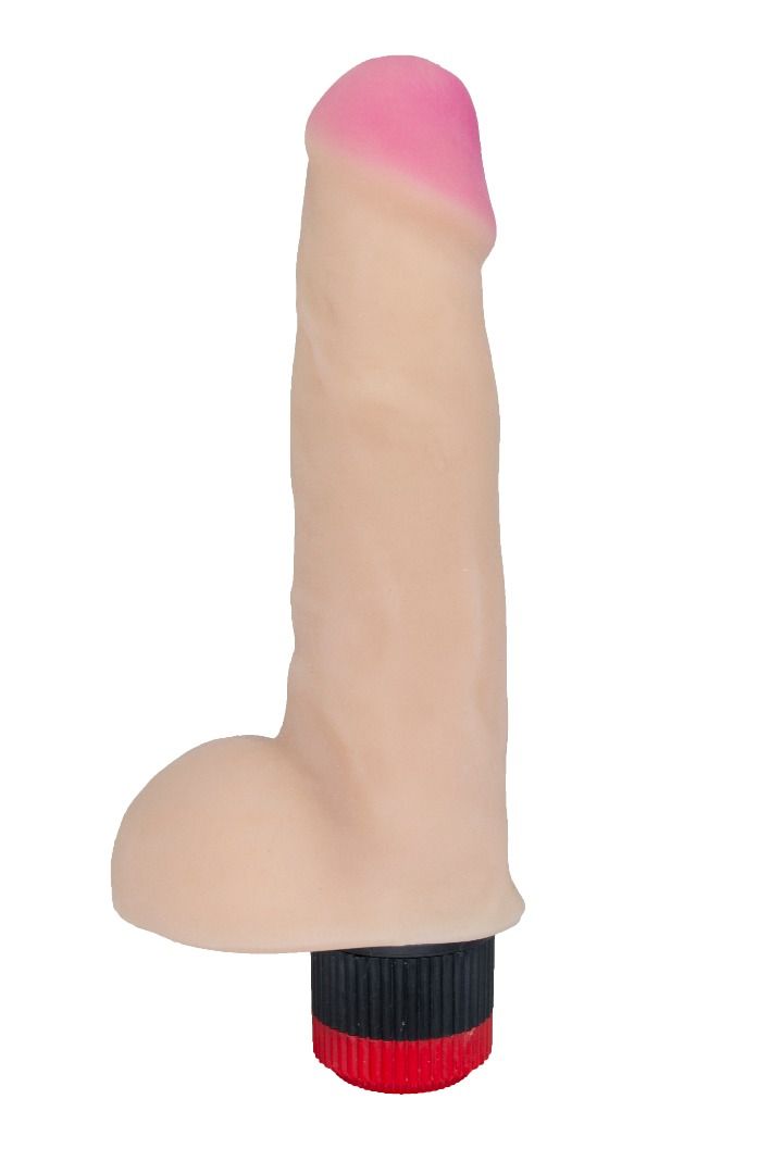 У этого вибромассажёра из материала неоскин, имитирующего кожные покровы, есть все качества, чтобы понравиться вам раз и навсегда. Не гигантские, но и не маленькие размеры. Ярко выраженный рельеф – чётко очерченная розовая головка, складочки, тоненькие вены, пышная мошонка. А ведь есть ещё и мультискоростная вибрация, для управления которой вам понадобится лишь слегка повернуть встроенный пульт-колёсико.